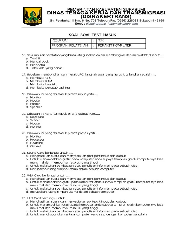 Link download soal ujian perangkat desa. Oct 15, 2017 · contoh soal tes komputer perangkat desa tahun 2017 . Jenis soal yang dikeluarkan dalam ujian sebagai berikut:. Play this game to review computers. We did not find results for:
